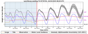 There has not been any significant adjustments in rainfall amounts over the last 24 hours with widespread totals of 2-4 inches and isolated amounts of 5-6 inches. We are starting to come into range of our shorter term guidance and will see if they offer any different suggests on rainfall amounts compared to the global models. Given the dry ground conditions flash flood guidance is high over the area and much of this rainfall will be able to be handled…in fact it is much needed…as long as it does not fall all at once. However, given the expected moisture in place along with the potential for cell training (storms moving over the same areas repeatedly) there is a risk of high short term rainfall totals that may result in street flooding and this would be especially true in any areas of poor drainage. The Weather Prediction Center has placed the area under a “slight” risk or level 2 out of 4 for flash flooding on Saturday. At this time, even going with the higher isolated totals bayous and creeks, while experiencing rises, are not expected to see any significant flooding.