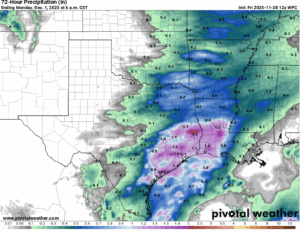 Active weather pattern continues with storm systems crossing the area roughly every 3-4 days. Next system is incoming from the western US and will arrive over Texas on Saturday. Winds have already become easterly this morning and will increase and turn more southeast through the day helping to bring increasing moisture into the area. Clouds will increase from west to east and can’t rule out a few showers west of the Brazos River by this evening, although this looks isolated at best. Better and deeper surge of moisture and modest lift increase into Saturday morning and scattered showers will develop from mid to late morning into the afternoon hours with increasing intensity and coverage. High resolution guidance is showing thunderstorms developing late Saturday afternoon/evening over the northwest portions of the area that then move southeast toward the coast overnight Saturday into Sunday morning.