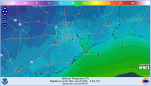 Hard freeze (24 or below) is likely for much of the area on Sun AM and even colder Mon AM with lows into the upper 10’s outside the Beltway and low to mid 20’s to the coast…and mid (possibly even low) 10’s across the Brazos valley….this will be a damaging freeze. High temperatures on Sunday will struggle to reach freezing and this may result in duration of temperatures below freezing nearing 40 hours or longer for much of the metro Houston area and up to 72 hours for areas to the north and west. High temperatures on Monday may only reach the mid to upper 30’s for a few hours.