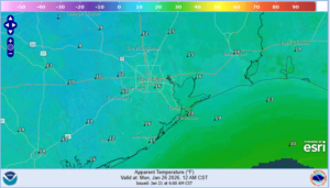 Wind chills will become dangerous with values falling into the 10’s late Saturday into much of Sun (low 20’s in the Houston metro) and then down to the low 10’s Sunday night into Monday AM (could even get 1’s in north and west areas).