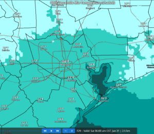 Coldest morning will be Sunday with a widespread hard freeze across much of the region. Lows in the upper 10’s to low 20’s north and west and mid 20’s metro area and south and east. Winds will be near calm Saturday night and Sunday morning so wind chills will be near the air temperature.